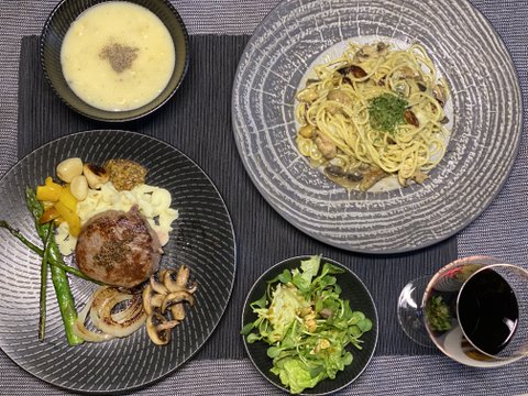 안심 스테이크와 바질크림 파스타 입니다!