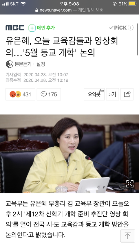 맨날 자기들끼리 의견 내서 발표하고 의견 따위 듣지 않음 ㅋㅋㅋㅋ등교 시킨다는 사람들이 화상으로 회의하고 앉아있네 ᄏᄏᄏᄏ 자기들도 무서운 거 학생들이 실험체야?