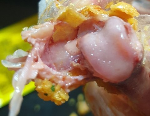 처음 치킨을먹어보니 살이 핑크색 안익은거처럼 되어있었습니다.