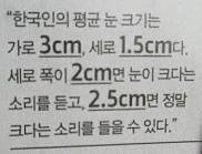 ???? 가로 3센치에 세로 1.5센치면 이미 큰 거 아님? 저게 평균이라고..? 그리고 ㅅㅂ 세로가 어떻게 2센치가 넘음 넘는 사람 있냐?? ㅈ거의 왕눈이 수준인데