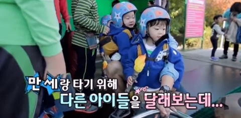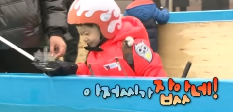 아빠랑 같이 썰매 타는 게 안 될 것 같아 보이자,