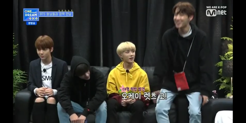 뷔가 앉아서 공간 부족해가지고 옆에 수빈 거의 소파에 부착됨ㅋㅋㅋ