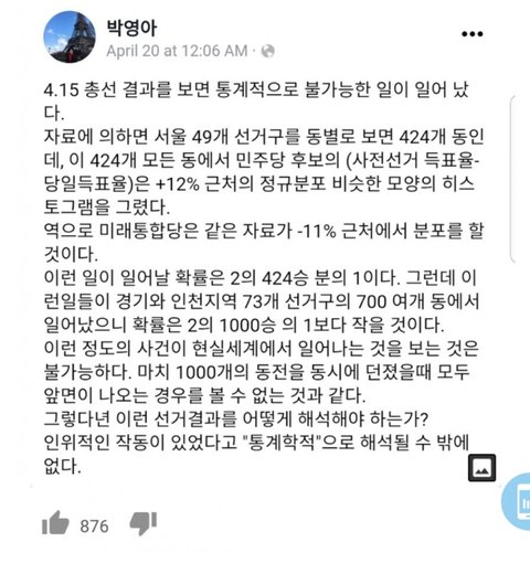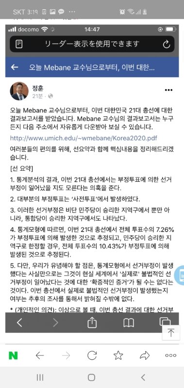 Hun Chung이라는 와사다 대학 교수님이 이 분에게 21대 총선에 부정선거인지 아닌지 의뢰를 하였었고