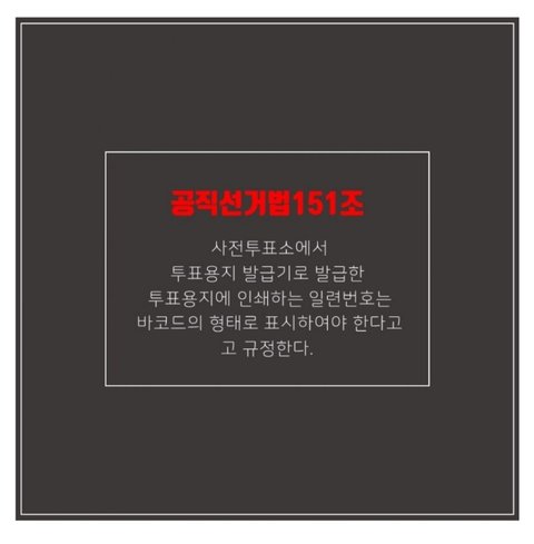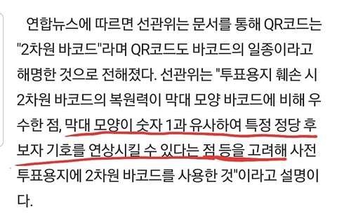 그래서 원칙적으로 투표지에는 QR코드를 쓸수없게되어있는데