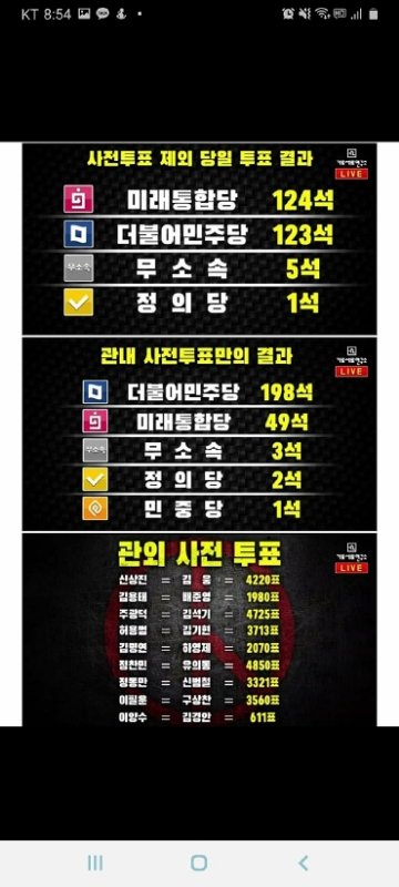 그 동별로 더불당과 미통당 사전투표 비율이 모두 근소한 차이에서 동일함. 이건 걍 말이 안되는거임