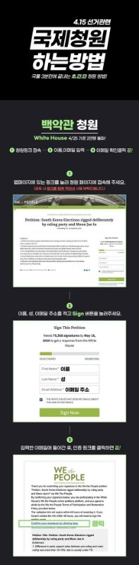 백악관 : https://petitions.whitehouse.gov/petition/petition-south-korea-elections-rigged-deliberately-ruling-party-and-moon-jae