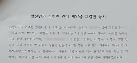 원고(집주인) 측 내용증명서 내용