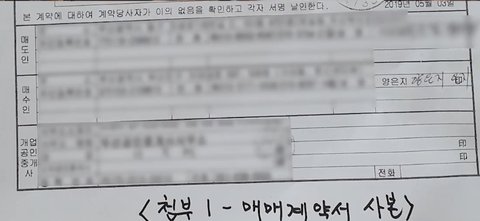 두번째, 양팡측은 계약서에 ‘인감 도장’을 찍지 않았다. 자필 사인으로 가계약을 진행했을 뿐이다.