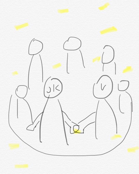 그 콘서트하고 있었고 원으로 둘러싸서 서로 팬분들 바라보는데 정국 옆에 뷔 였고 종이새가 날라다녔고 뷔한테 종이새 한개 날라오는데 그거 잡을려고 하다가 정국이랑 손 잡는 짤 있는데
