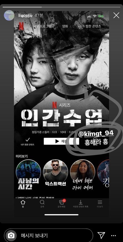 김지인 인스타 스토리에 올라온건데 나재민이랑 넷플 계정공유하고있음
