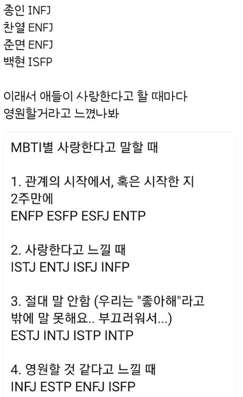 종인이 infj인데 주변 인프제들 보면 유들유들하고 사랑스러운 사람들이었음