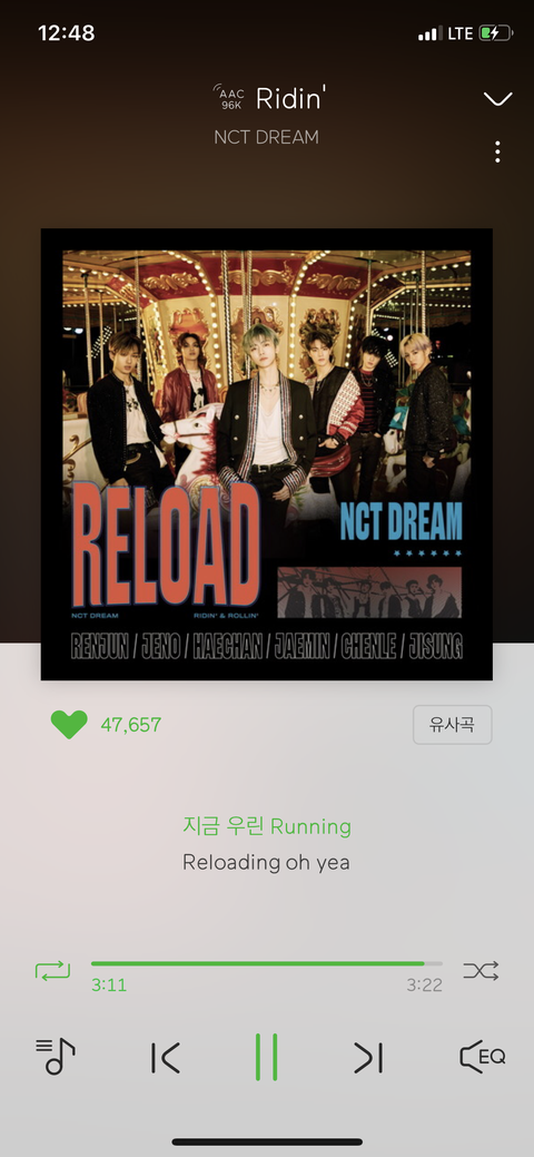 지금 스피커로 듣고 팬톡에서 주니들이랑 실시간 차트 ㄱ보고 즐기고있는데 라이딩 노래 개좋아..