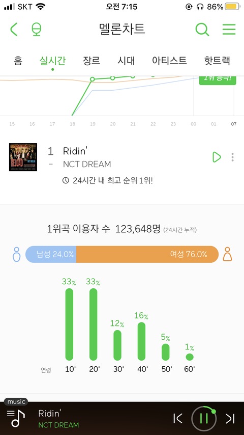 1위곡 이용자수라니.... 1위곡이라니