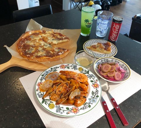 도우 반죽하고 토핑해서 피자 굽고 파스타는 베트남고추