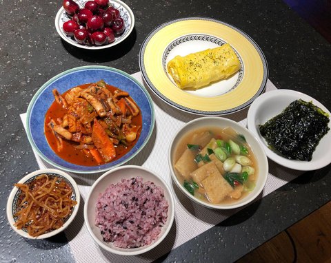 오징어볶음 치즈계란말이 어묵국 간장진미채