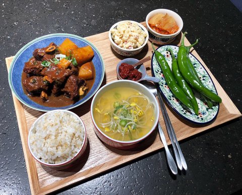 소갈비찜 콩나물국 영파랑 과일 갈아서 양념에 재웠다가