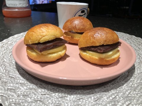 베이킹한 모닝빵에 팥앙금 무염버터 끼워넣고