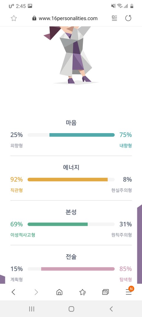 나 맨날 mbti 특징보면서ㅋㅋㅋ intp 나랑 ㅈㄴ 안맞누 이러고다녔는데 내가 intp나옴.. 근데 특징같은거 전혀 안맞던데ㅋㅋㅋ 걍 재미로하는거지?