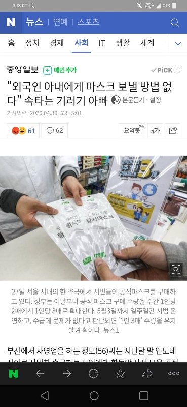외국인 아내에게 마스크 보낼 방법 없다" 속타는 기러기 아빠
