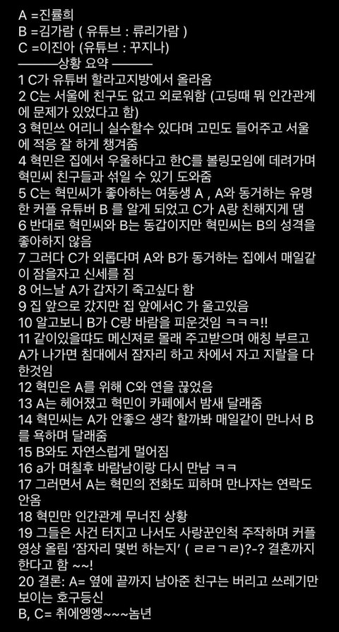강혁민이랑 A랑 C는 친한 사이였고 B는 A의 남자친구 였음