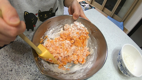 채소를 믹서에 갈아서 계란1개, 쌀가루 150g, 코코넛가루(생략가능)을 넣고 반죽해주세요~