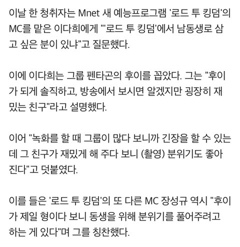 후이 능력도 되고 성격좋아보이던데 떴으면