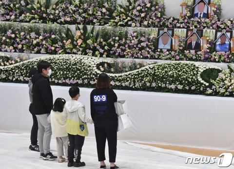 한 할아버지는 아들로 보이는 영정 앞에서 사진 속 얼굴에 손을 뻗으며 고개를 숙였다. 다른 이의 부축을 받고 겨우 영정 앞에 다가선 한 여성은 이내 다리에 힘이 풀려 주저 앉아 통곡했다. 준비된 국화를 영정 앞에 살며시 놓으며 조용히 흐느끼는 이들도 있었다.