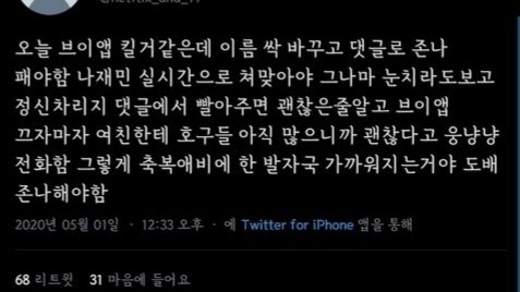 조카 패서 빠혐 깊어지고 기싸움하다가 도리어 축개비되기전에 엓언급 작작하길바람^^*