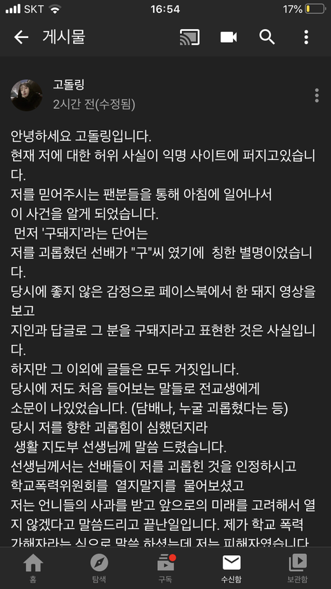 고돌링 유튜브에 올린 해명글 댓글에 추가했는데 걍 본문에다가 올릴게 아까 못 본 애들은 봐라
