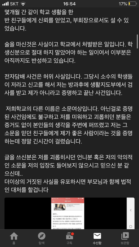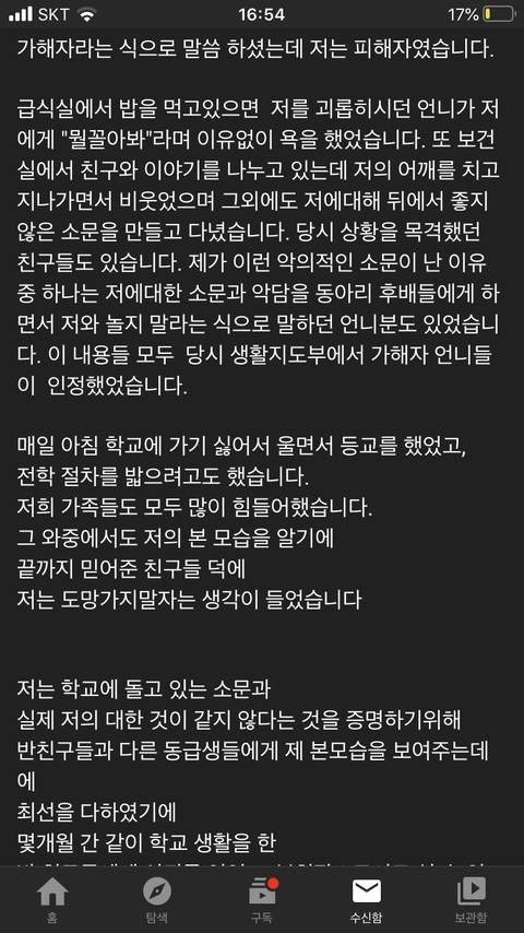 +학교 명성 얘기 많길래 한마디 함 솔직히 똥싸면서 온클 듣는거 가지고 뭐 명성 떨어진다 뭐다 하는건 억지맞음 여상은 기업이 보는 이미지가 생명임 그래야 취업추천도 들어오는거고 근데 고돌링은 미자때 술마시고 댓글들 말대로 담배도 폈다? 기업들은 모를 수 있어도 걔네 학교에 선생님들 귀에 들어가면 .. 끝임 학폭은 아직 증거도 없고 진짜로 고돌링 소문 퍼트린 언냐들이 난리치는걸 수도 있으니까 고돌링이 뭐 올릴 때 까지 중립박자 욕 하지 말고