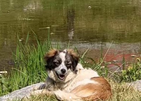 대구 칠곡 팔거천 산책로에 유기견이 있습니다.