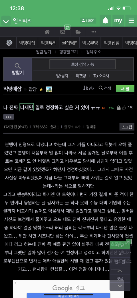이글 좀 읽었음 좋겠어...그 일로 속상한 거 알겠는데 이건 선을 넘을 것 같아.. 팬들이 좋아한다고 핑크머리 한 4-5 개월을 해주고 멤버 일상 궁금해 할까봐 몇시간씩 포토샵으로 편집해가면서 사진 올려주는 앤데... ㅜㅜ 팬사랑이 컨셉질이라고 생각 안했으면 좋겠어 ㅜㅜ