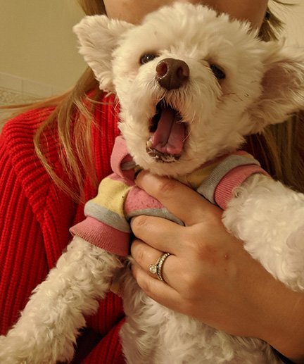 2010년도에 우리 이쁜 초롱이를 어느 온타리오 시골에서 단돈 300불에 (30만원 정도) 분양을 받았어요. 그때 어떤 학생에게 분양을 받았는데, 따로 살고 있는 자기 할머니가 키우는 강아지에게 나온 새끼중 한마리를 용돈 식으로 (분양해서 돈을 가지라고) 자기에게 준거라서 자기도 정확히 어떤 종의 강아지인지는 모르고 대충 하얀 요크셔테리어와 푸들 믹스라고 했어요.