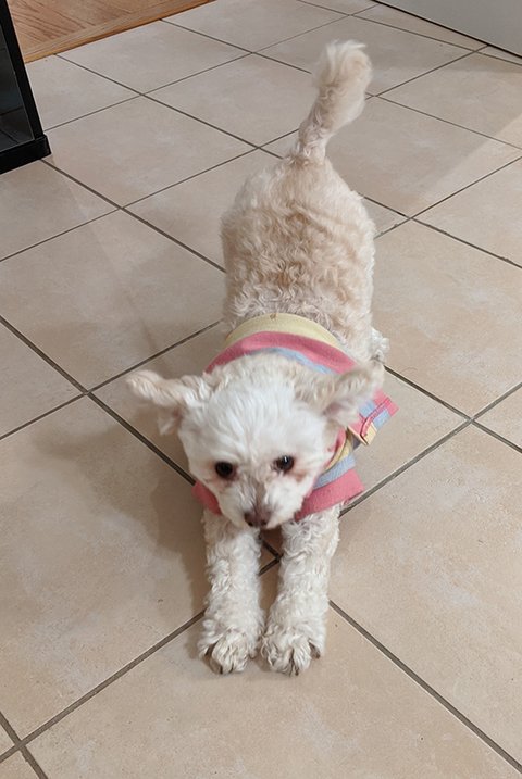 10년 동안 너무너무 이쁘게 자라고 이렇게 귀엽고 착하고 영리한 강아지는 정말 처음이에요. 아픈적도 없고 배변도 잘 가리고. 집에 오면 막 웃는데, 눈까지 찌프리면서 웃어요. 그리고 꼬리가 너무 짧아서 그런지 기쁘면 막 빙빙 돌아요. 집에 토이푸들과 함께 키웠고, 골든 리트리버도 있는데, 이런 강아지는 처음이고 제게 너무 특별한것 같아요.