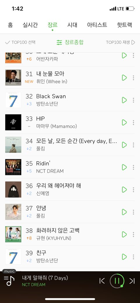 ㅠ 우리 멜론 일간 35위 (5다운)