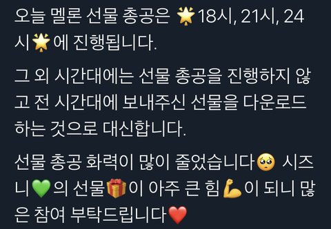 선물 총공 많이 참여하자!! 많이 줄었대ㅠㅠㅠㅠㅠ 벌써부터 지치면 안돼!! 물론 길게 봐야 하지만 다음주까지만 일단 빡세게 달려보자