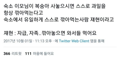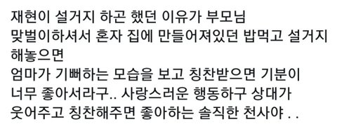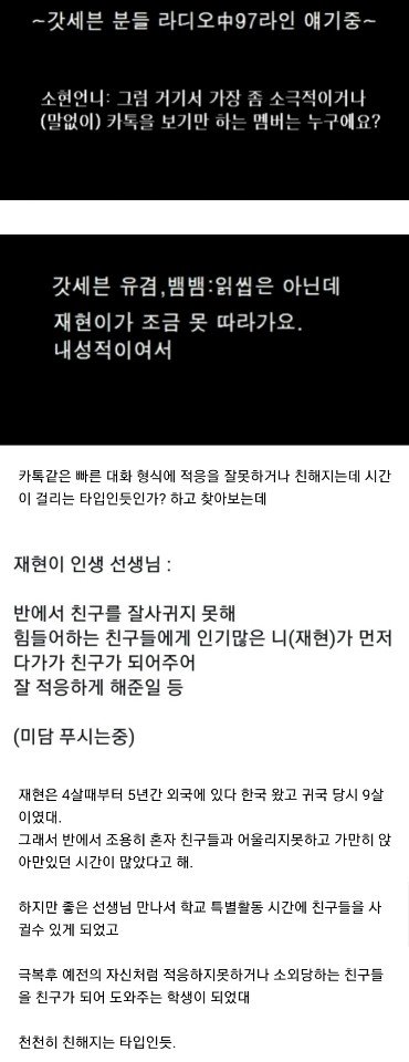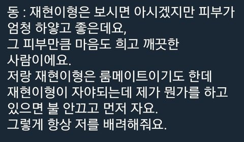 동갑 친구들이랑 하는 카톡에 재현이 성격이 내성적인 편이라 못따라갔대