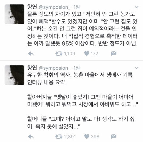 한국의 밥줘충들은 분석대상임. 도대체 양심이란게 탑재된 인간이 저렇게 여성을 착취하고도 일말의 반성도 없이 계속 뻔뻔함을 유지한채 살아갈 수 있을까? 한국산 밥줘충들 싹다 수거해서 뇌분석해봐야함. 이걸 인류로 분류할 수 있는지도 검증이 필요하다