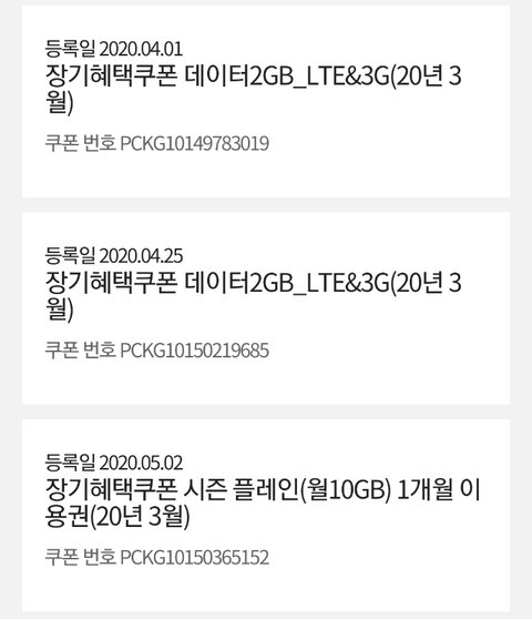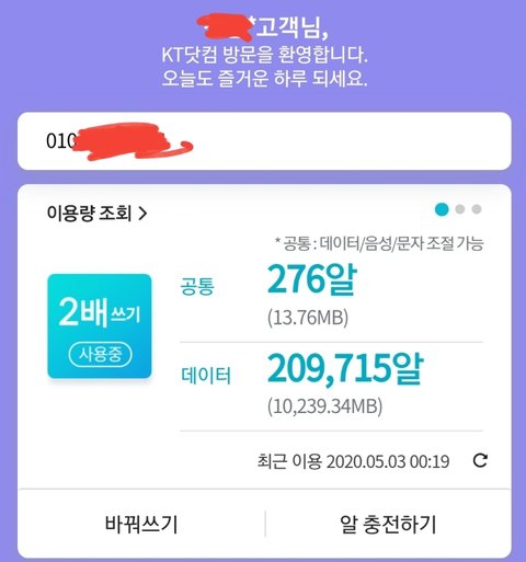 kt홈페이지 들어가서 회원가입하고 로그인하고 마이페이지 들어가서 쿠폰 들어가면 LTE 2기가 쿠폰이나 10기가 쿠폰 등등이 있을거임 그럼 그거 다운받아서 쓰셈 그리고 데이터 2배쓰기 기능 꼭 쓰셈 나 그래서 원래 데이터 1.5기간데 지금 11기가임ㅋㅋㅋㅋ 사진은 인증.. 나 원래 데이터 거지여서 ㅈㄴ힘들었는데 이젠 데이터로 유튜브도 본다 ㅎㅎㅎ