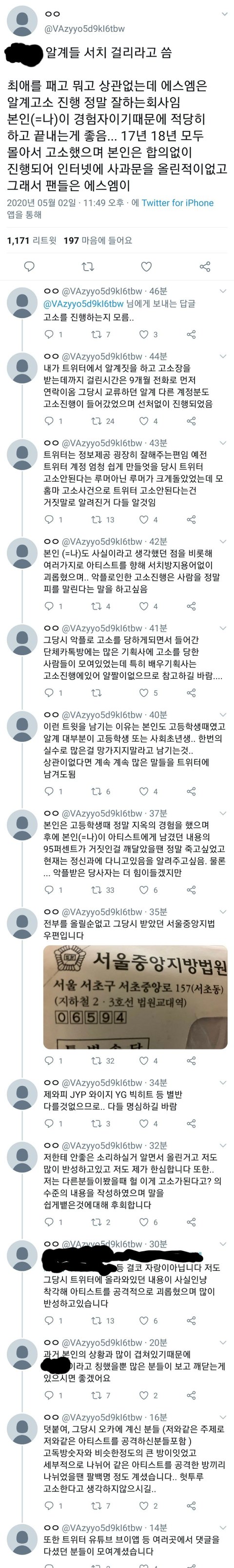알계들 말고 악개들 먼저 잡아갔으면 좋겠다ㅠㅠㅠ 우리판은 알계보다 악개들이 더 집요하고 악랄하게 멤버 한 명 까서ㅠ 올해 3월부터 트위터 아이디나 인장 바꿔도 동일계정인거 증명할 파일이랑 악개들 트윗 피뎊딴거 모으고있는데 몇 달 모으면 고소 잘되겠지?