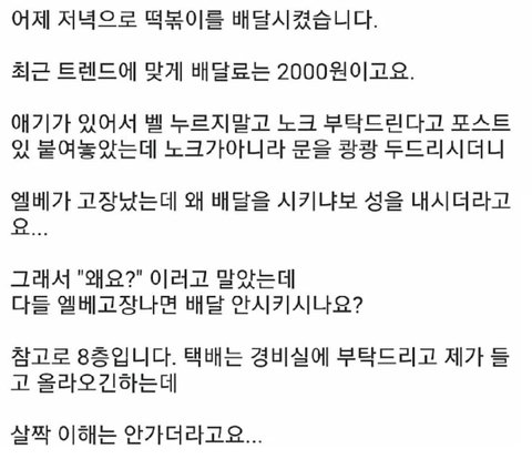 엘베 고장 난 거 알면서 배달 시킨 거