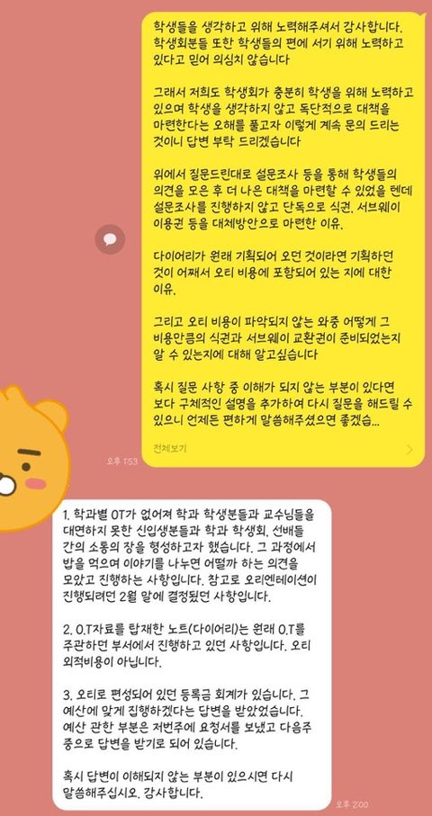 분명 오티비용의 규모를 파악하지 못했다고 말씀하셨던 학생회장님께서 이번 답변에서는 1인당 4만원의 예산을 잡았다는 것 입니다.