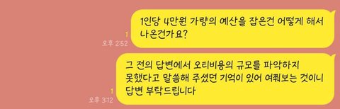 오티 예산의 규모를 모르는데 어떻게 1인당 예산을 접은 것 인지 알 수 없어서 다시 질문을 남겼고 아직 답변이 없는 상황입니다.