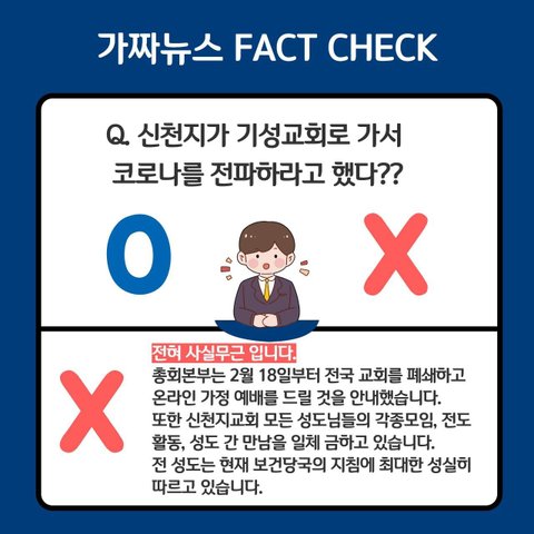 신천지와 코로나19 관련한 뉴스 및 SNS 정보에 대한 사실 여부만을 말씀 드립니다.