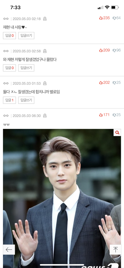 엔터에 ㅊㅇㅇ님이랑 ㅈH현이랑 얼굴 합친 글 있는데 거기서 베플순으로 들어간다음에 저 댓 좋아요 눌러주고 까는글은 반대 눌러주라