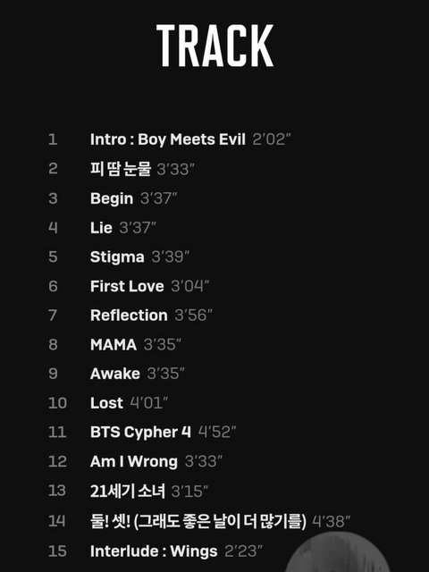 - 앨범 소개 : 방탄소년단의 여덟 번째 음반이자 두 번째 정규 앨범이다. '화양연화' 시리즈를 통해 인생의 가장 아름다운 순간을 맞이한 방탄소년단은 지난 시간들을 뒤로 하고 다시 한 번 새로운 문 앞에 섰다. 앞서 '청춘'과 '성장'을 키워드로 앨범을 구성해왔던 방탄소년단은 관점을 바꾸어 유혹과 욕망을 그려내 눈길을 끌었다. '악'을 깨닫는 과정도 성장의 일부라는 해석이다. "난생 처음 유혹과 마주해 고민하고 갈등하는 소년들"을 콘셉트로 다크하고 파격적인 이미지로 새로운 면모를 드러내기도 했다. 또한 이번 앨범에는 2013년 데뷔 이후 최초로 방탄소년단 멤버들의 개별 솔로곡이 수록돼 특별함을 더한다. 각 멤버들의 자전적 이야기를 각색하여 가사화 하였으며, 사전에 공개된 쇼트필름에 삽입되어 컴백에 대한 기대감을 높였다.