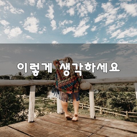 ♥ 이렇게 생각하세요 ♥ 힘들 때는"이 쯤이야" 라고생각 하세요. 슬플 때는"하나도 안 슬퍼" 라고생각 하세요. 억울한 일을 당할 때는"별걸 아니네" 라고생각 하세요. 하기 싫은 일을 할 때는"그래 이번 한번만 하자" 라고생각하세요. 용기가 없을 때는"눈 딱 감고 해버리자" 라고생각하세요. 무기력 해질 때는"지금 당장 내가 할일이 뭐지" 라고생각 하세요. 밥맛이 없을 때는"굶주린 아이들의 눈동자" 를생각 하세요. 재미가 없을 때는"하하하 억지 웃음이라도웃고 재미있다" 라고웃어 주세요. - <삶은 희망이다>中 -