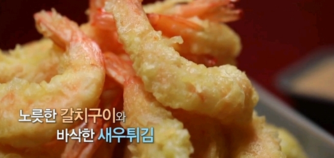 바삭한 새우튀김에 (참고로 딘딘이 좋아한다고 함)