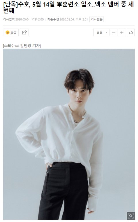 엑소 수호 5월 14일에 군입소한대