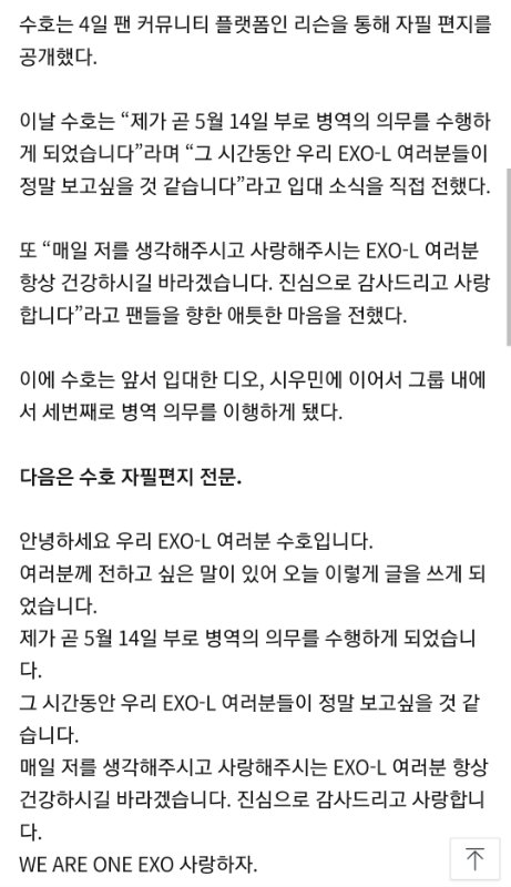 얘들아 수호 군대간대.. 그와중 팬사랑 ㅜ